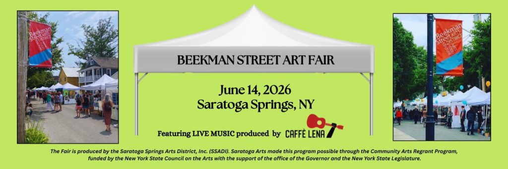 Produced by the Saratoga Springs Arts District, Inc, a 501(c)(3) nonprofit organization, our Beekman Street Art Fair will kick off summer in Saratoga Springs, NY, on Sunday, June 14, 2026 from 10 am – 5 pm.